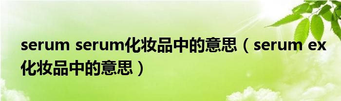 大家好,小晋来为大家解答以下问题,关于serum serum化妆品中的意思,serum ex化妆品中的意思很多人还不知道,今天让我们一起来看看吧!