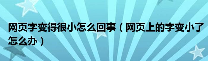 大家好,来宝来为大家解答以下问题,网页字变得很小怎么回事,网页上的字变小了怎么办很多人还不知道,今天让我们一起来看看吧!