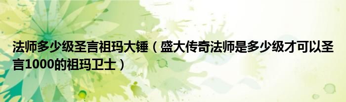法师多少级圣言祖玛大锤(盛大传奇法师是多少级才可以圣言1000的祖玛卫士)
