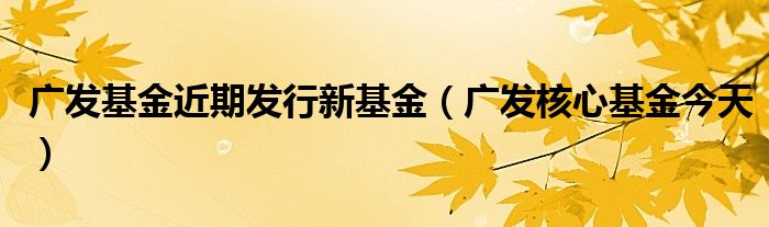 关于广发基金近期发行新基金,广发核心基金今天这个很多人还不知道,今天菲菲来为大家解答以上的问题,现在让我们一起来看看吧!