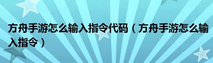 大家好,小晋来为大家解答以下问题,关于方舟手游怎么输入指令代码,方舟手游怎么输入指令很多人还不知道,今天让我们一起来看看吧!