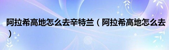 阿拉希高地怎么去辛特兰(阿拉希高地怎么去)