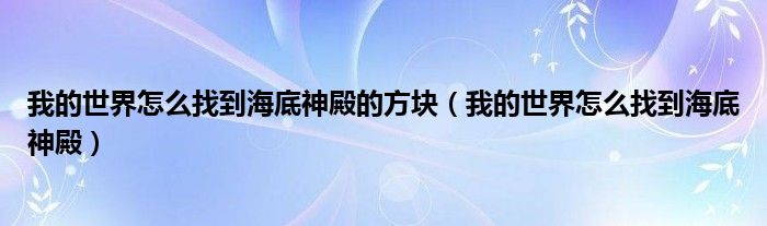 关于我的世界怎么找到海底神殿的方块,我的世界怎么找到海底神殿这个很多人还不知道,今天菲菲来为大家解答以上的问题,现在让我们一起来看看吧!
