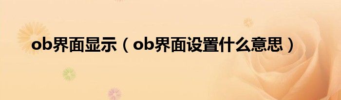 大家好,小晋来为大家解答以下问题,关于ob界面显示,ob界面设置什么意思很多人还不知道,今天让我们一起来看看吧!