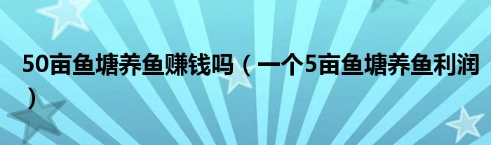 关于50亩鱼塘养鱼赚钱吗,一个5亩鱼塘养鱼利润这个很多人还不知道,今天菲菲来为大家解答以上的问题,现在让我们一起来看看吧!