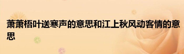 关于萧萧梧叶送寒声的意思和江上秋风动客情的意思这个很多人还不知道,今天菲菲来为大家解答以上的问题,现在让我们一起来看看吧!
