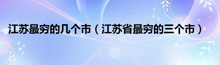 大家好,小晋来为大家解答以下问题,关于江苏最穷的几个市,江苏省最穷的三个市很多人还不知道,今天让我们一起来看看吧!