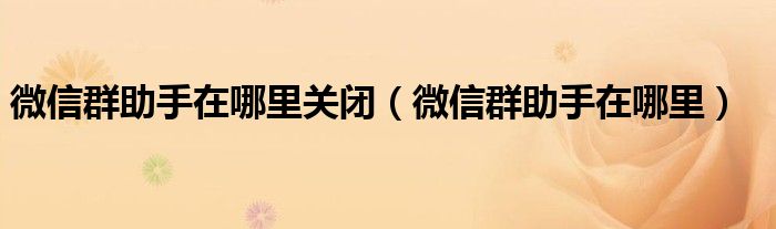 微信群助手在哪里关闭(微信群助手在哪里)