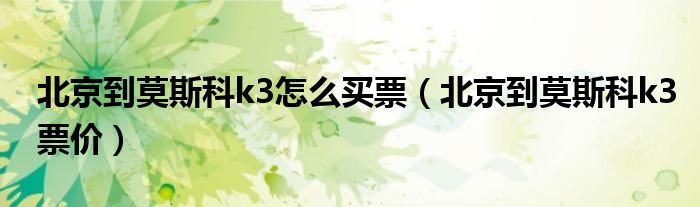 关于北京到莫斯科k3怎么买票,北京到莫斯科k3票价这个很多人还不知道,今天菲菲来为大家解答以上的问题,现在让我们一起来看看吧!