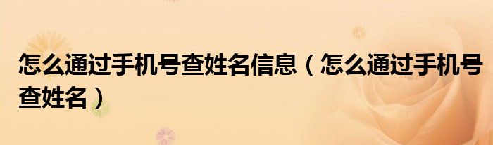 大家好,小晋来为大家解答以下问题,关于怎么通过手机号查姓名信息,怎么通过手机号查姓名很多人还不知道,今天让我们一起来看看吧!