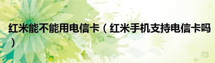 大家好,来宝来为大家解答以下问题,红米能不能用电信卡,红米手机支持电信卡吗很多人还不知道,今天让我们一起来看看吧!