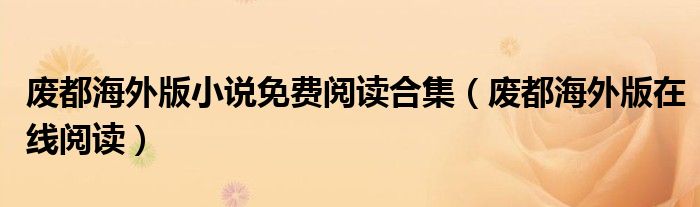 关于废都海外版小说免费阅读合集,废都海外版在线阅读这个很多人还不知道,今天菲菲来为大家解答以上的问题,现在让我们一起来看看吧!