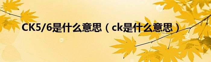 关于CK5/6是什么意思,ck是什么意思这个很多人还不知道,今天菲菲来为大家解答以上的问题,现在让我们一起来看看吧!