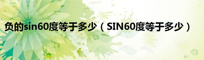 关于负的sin60度等于多少,SIN60度等于多少这个很多人还不知道,今天菲菲来为大家解答以上的问题,现在让我们一起来看看吧!