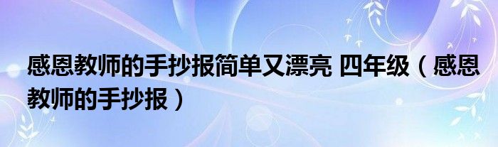关于感恩教师的手抄报简单又漂亮 四年级,感恩教师的手抄报这个很多人还不知道,今天菲菲来为大家解答以上的问题,现在让我们一起来看看吧!