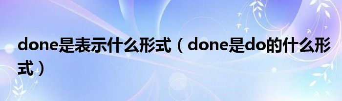 大家好,小晋来为大家解答以下问题,关于done是表示什么形式,done是do的什么形式很多人还不知道,今天让我们一起来看看吧!